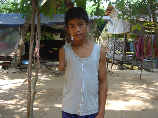 Boreak, 14 years old, lost his arm to a landmine at age 6